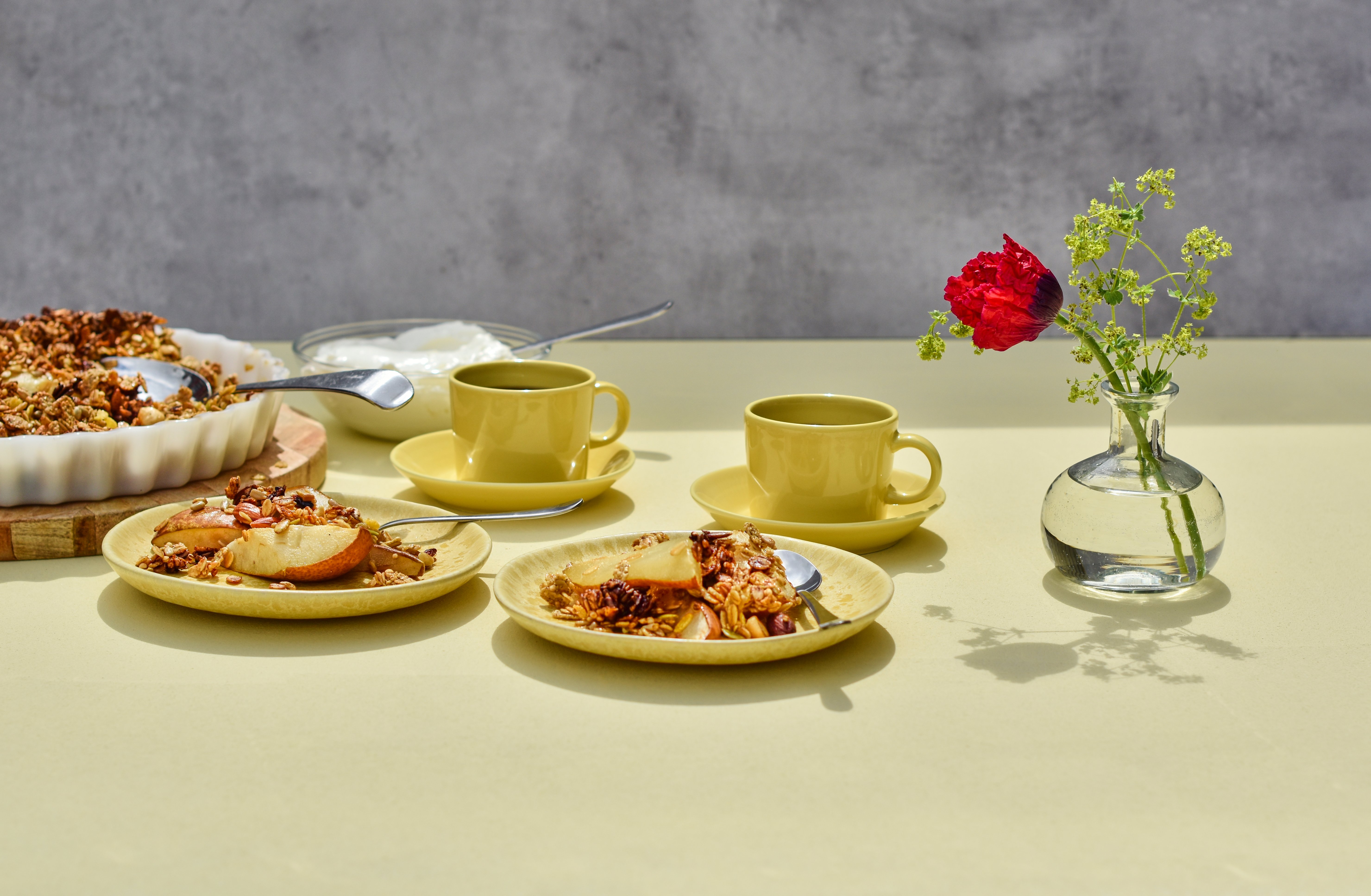 Säsongens frukter med granola, agavesirap och cashewnötssmör
